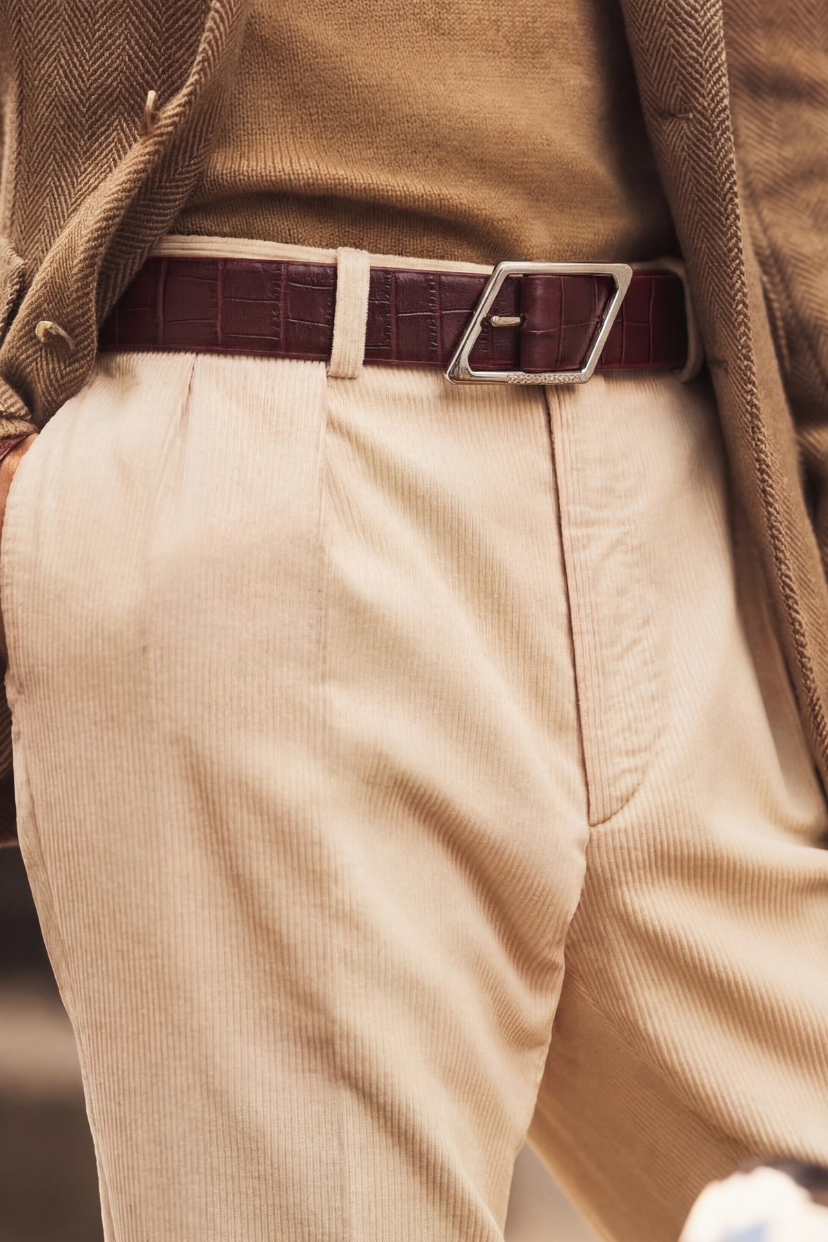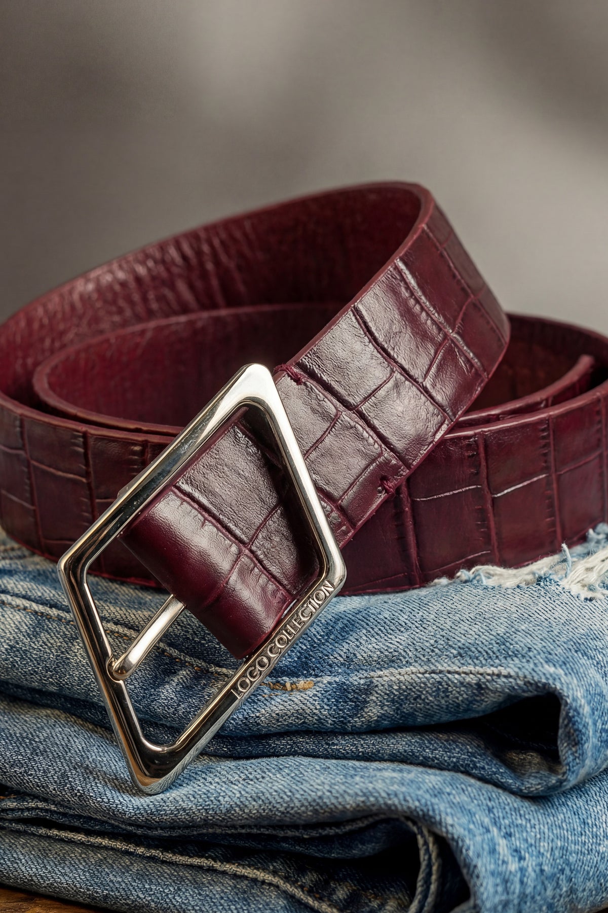 A timeless belt made in maroon crocodile-printed cow leather, accented with a premium LOGO COLLECTION metallic buckle for a modern finish.