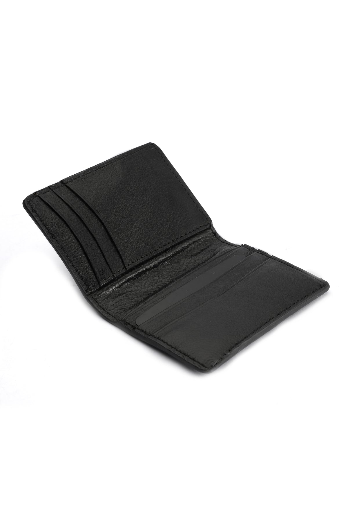 Black in color is a premium card holder made from cow crust leather with detailed laser engraving and a hand-painted finish. This practical card holder has a slim, smart profile with 8 pockets for everyday use.