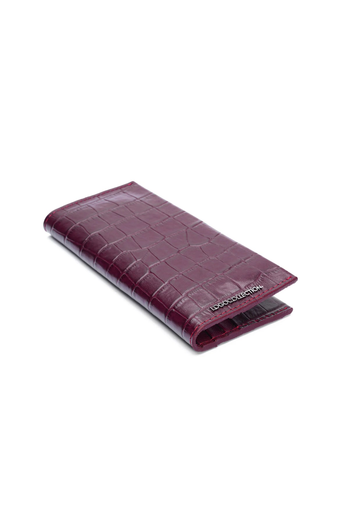 An elegant piece of men's wallet which is designed with premium maroon crocodile-printed cow leather. It is paired with refined metallic logo details for a chic finish.