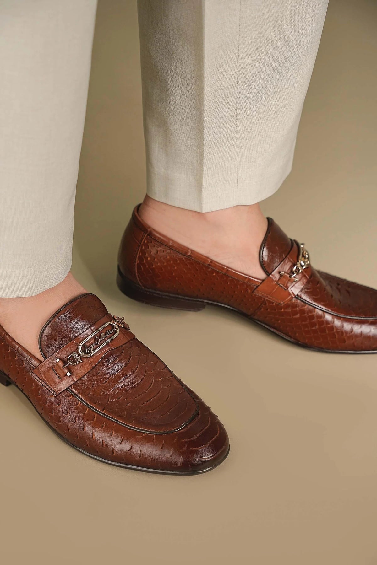 Stand out in style with these chic brown formal shoes. They come with a distinctive scale-patterned design that reflects bold elegance and refined charm of the modern man.