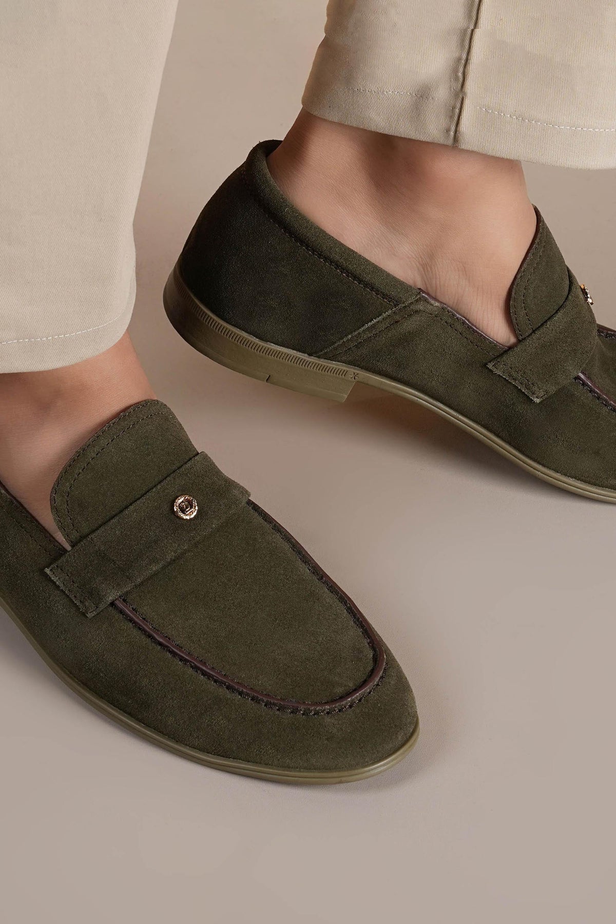 Versatile in design, these green formal suede shoes pair comfort and elegance together. The classy suede finish makes these shoes ideal for professional wear and formal occasions.