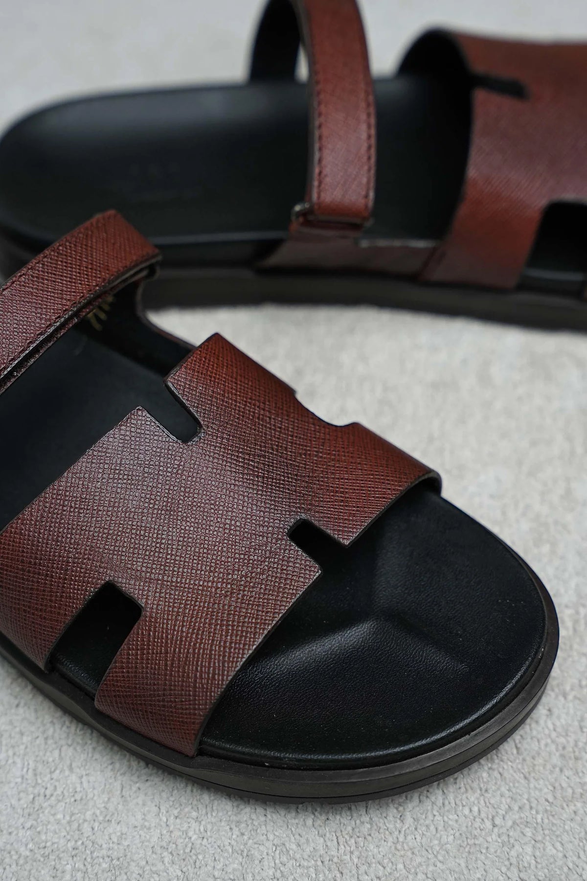 Style up in Logo kids slippers this summer. These brown leather slippers are designed for comfort and durability, these half coverage slippers feature an adjustable strap for a secure and customizable fit.