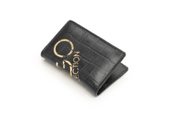 Black croc-patterned Rfid wallet with Logo collection design