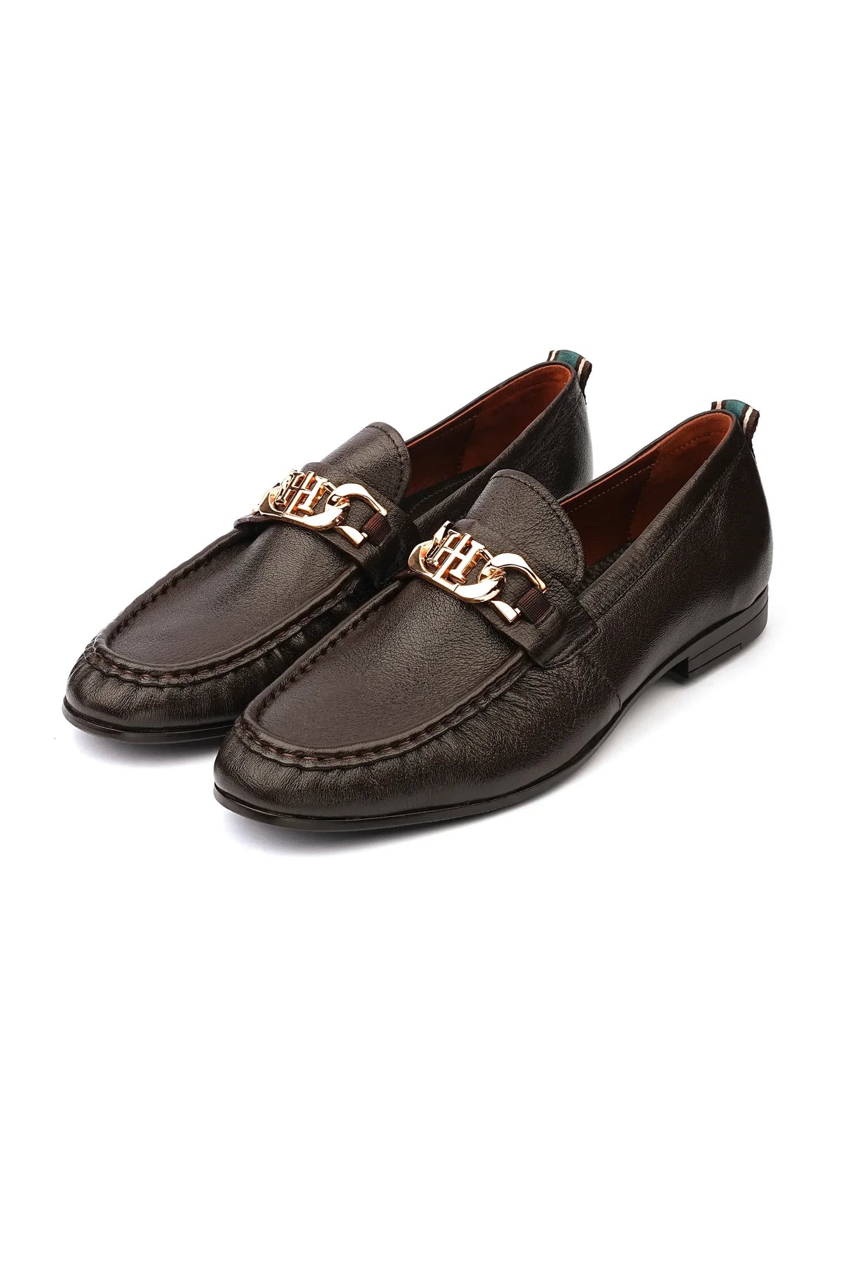 Our brown formal menswear, featuring premium gator skin texture combines a simple design and flawless craftsmanship. The stylish brooch on top gives the shoes an elegant finesse.