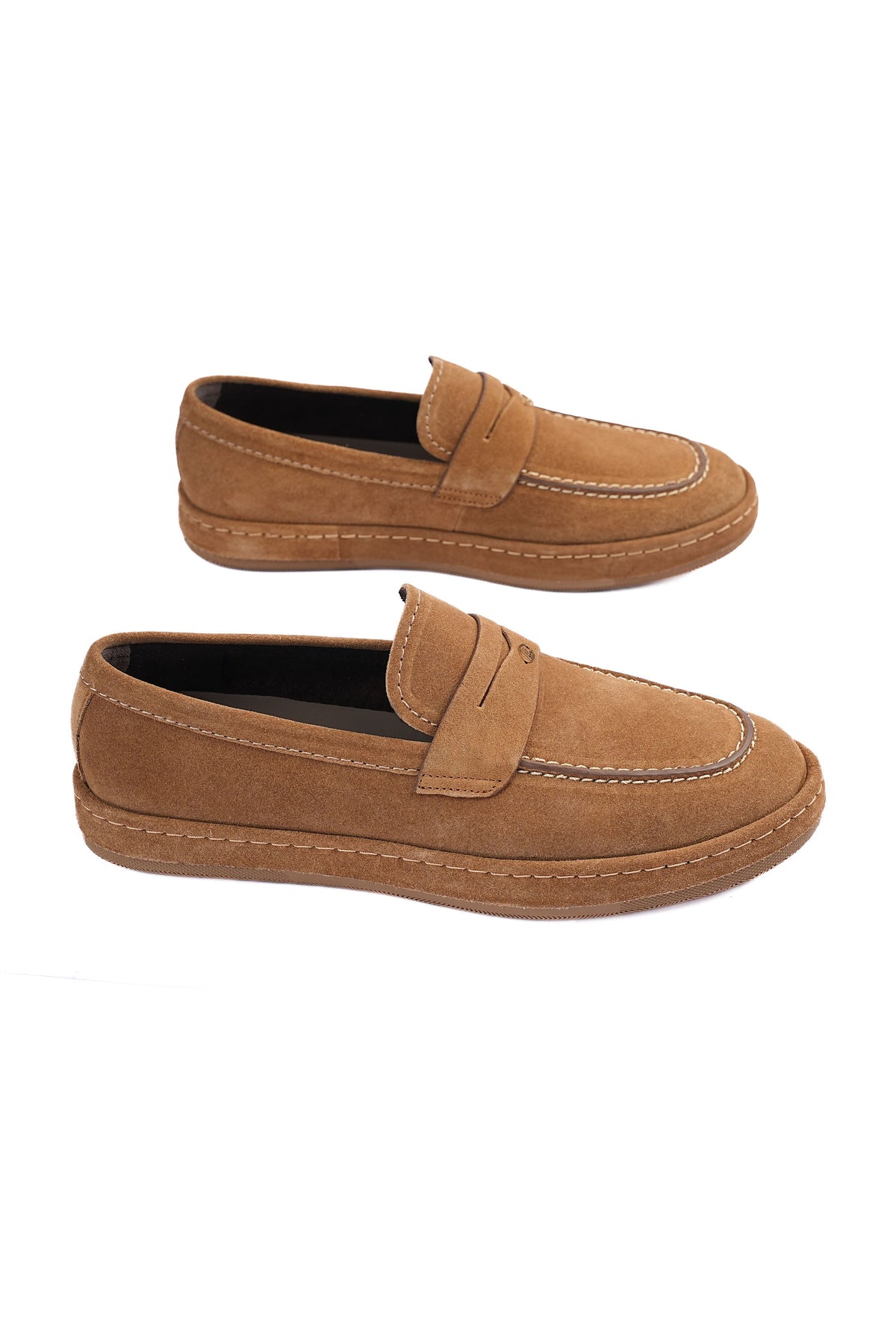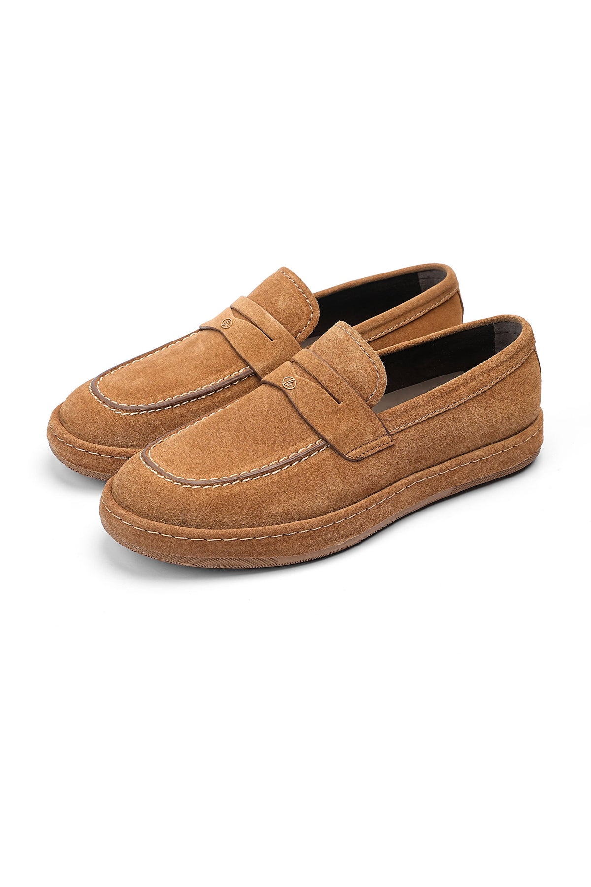 Camel suede leather shoes in a warm tone. It combines casual charm with a soft textured upper.