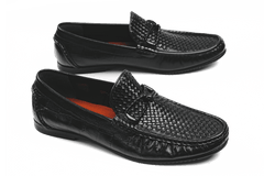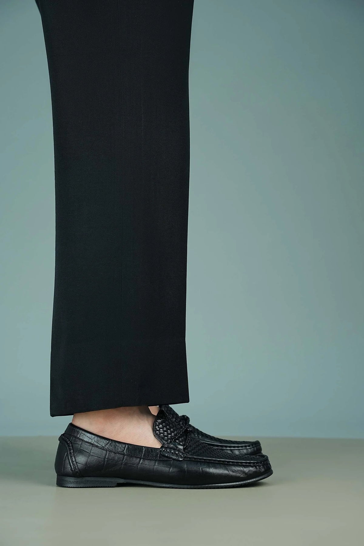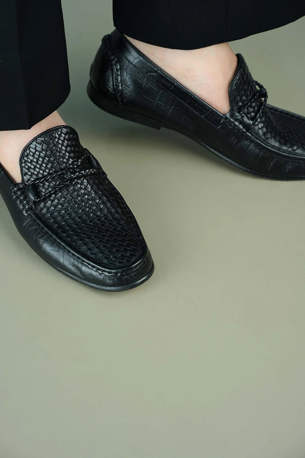 Step out in style with these matte black formal shoes featuring a delicate interwoven criss-cross pattern on top. This is designed to match the vibe of the modern man.