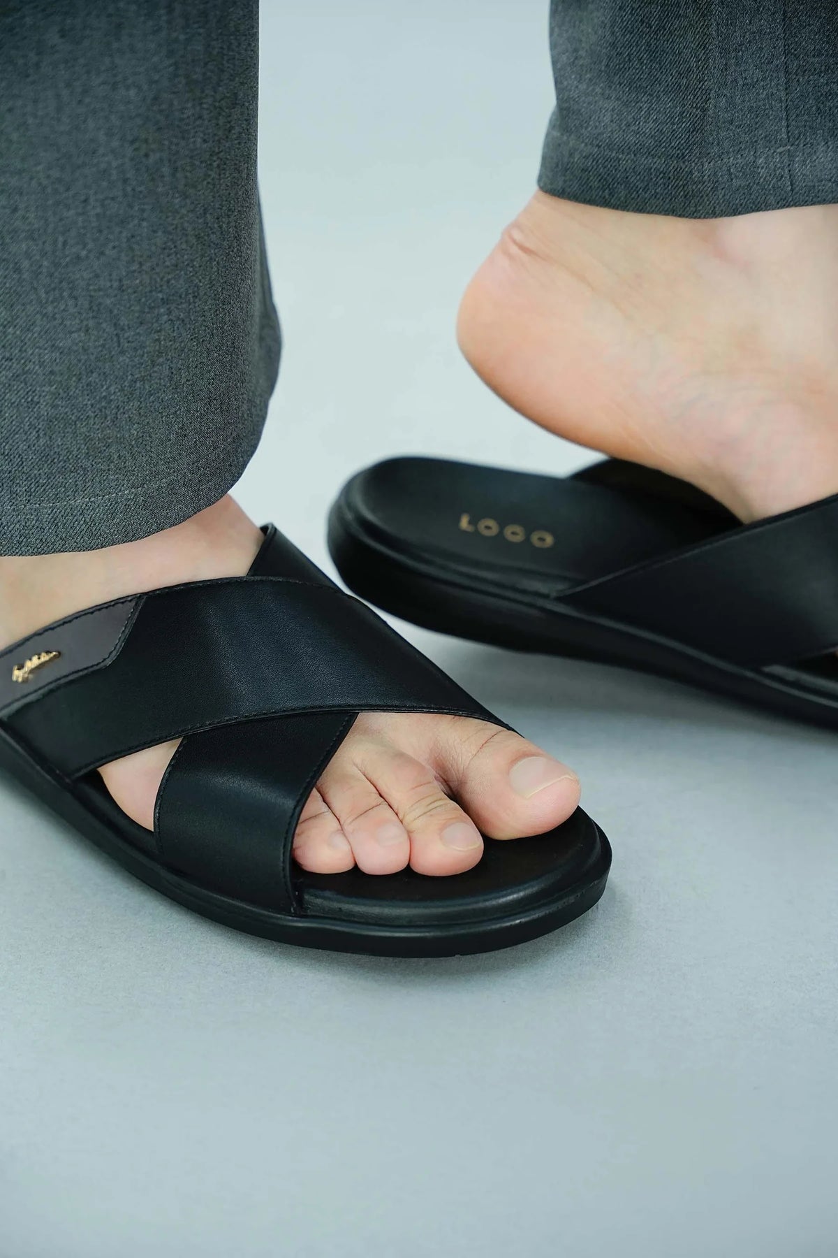 Level up your footwear game with our black cross slippers featuring a comfortable finish and an soft undersole. These slippers are ideal for all day wear whether you are heading out for running errands or casual meetups.