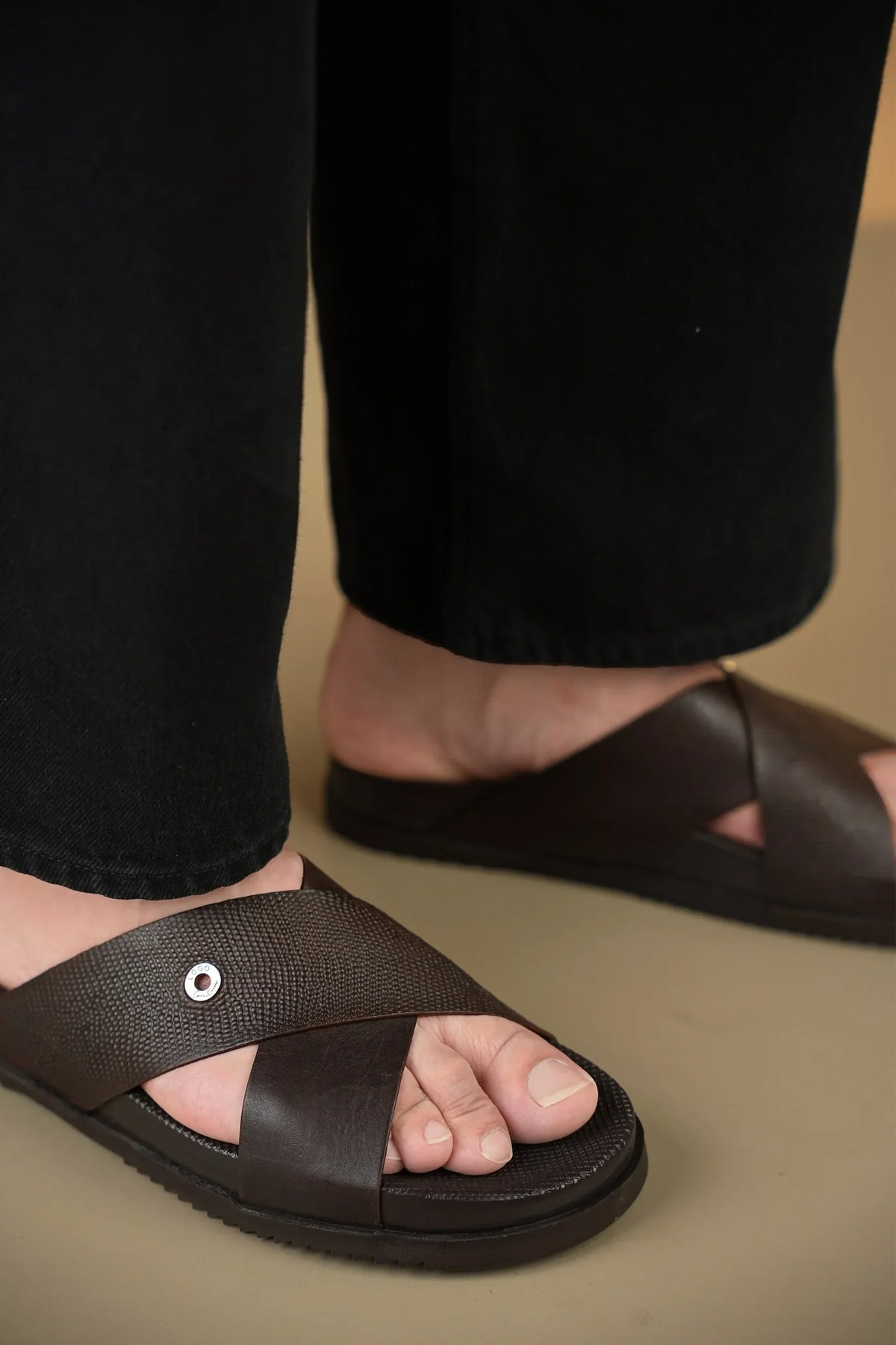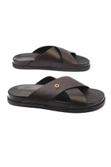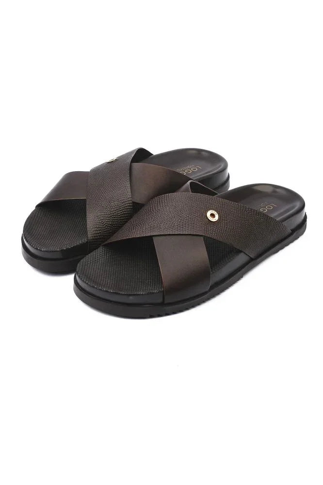 This brown cross slipper features subtle detail on the side. Premium leather make offers a lightweight yet sturdy design for day-long comfort.