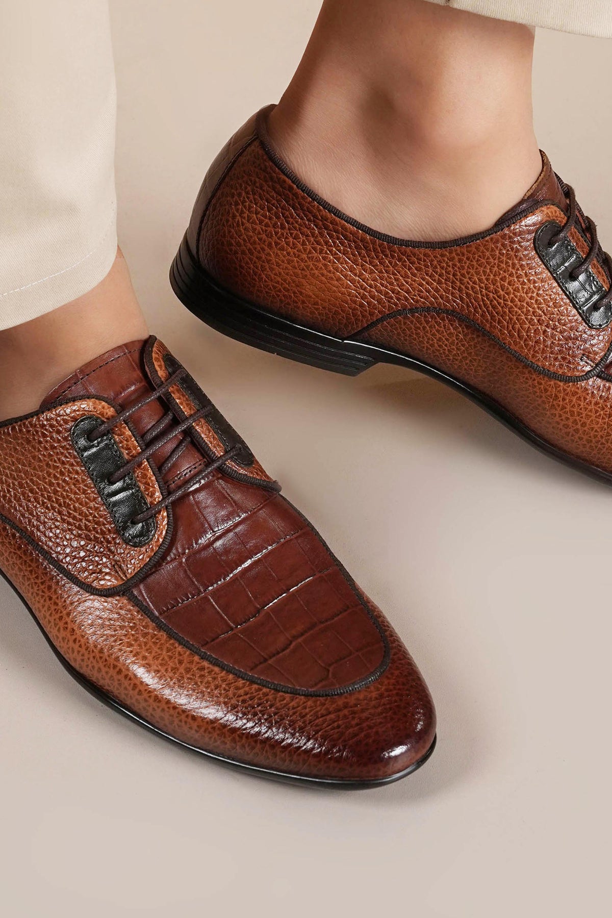 Elevate your formal attire with our brown formal shoes with laces. Crafted with precision, these shoes feature a sleek apron toe design and classic laces for a timeless look.