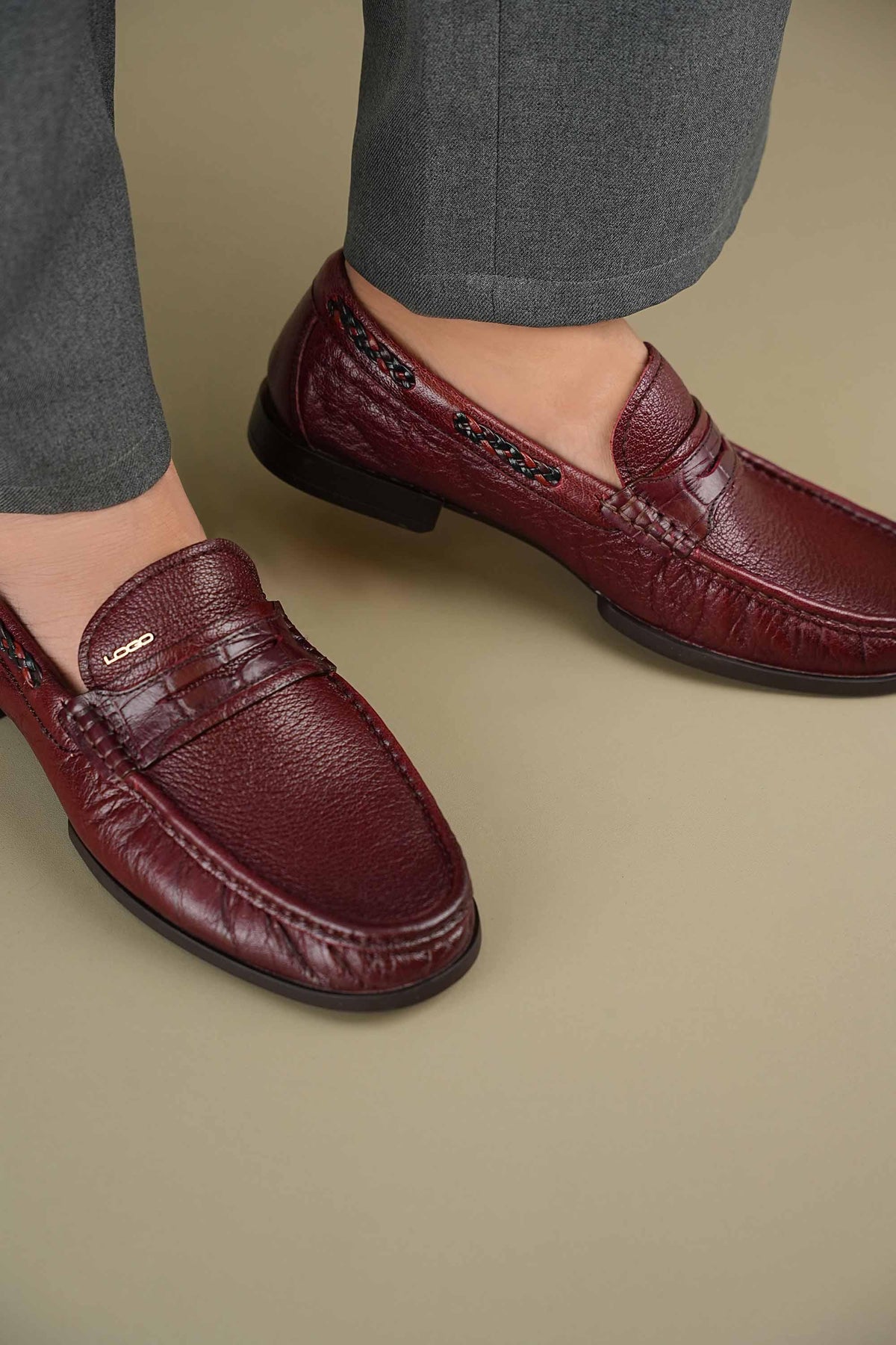 Bold in color and refined in design, this formal footwear in chilli maroon leather brings luxurious detail to modern footwear.