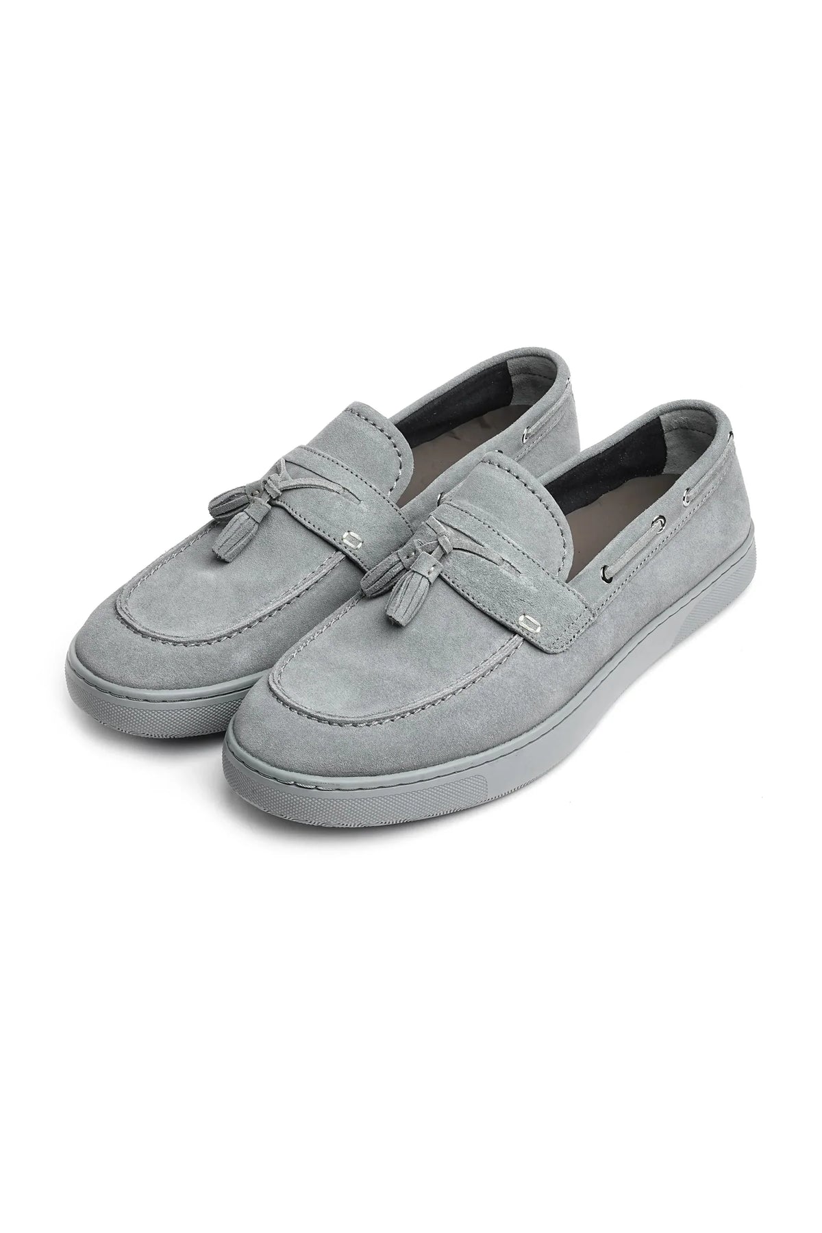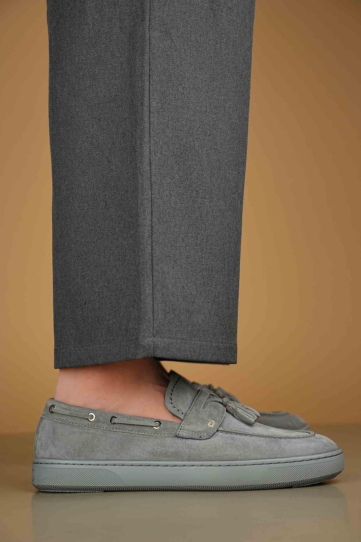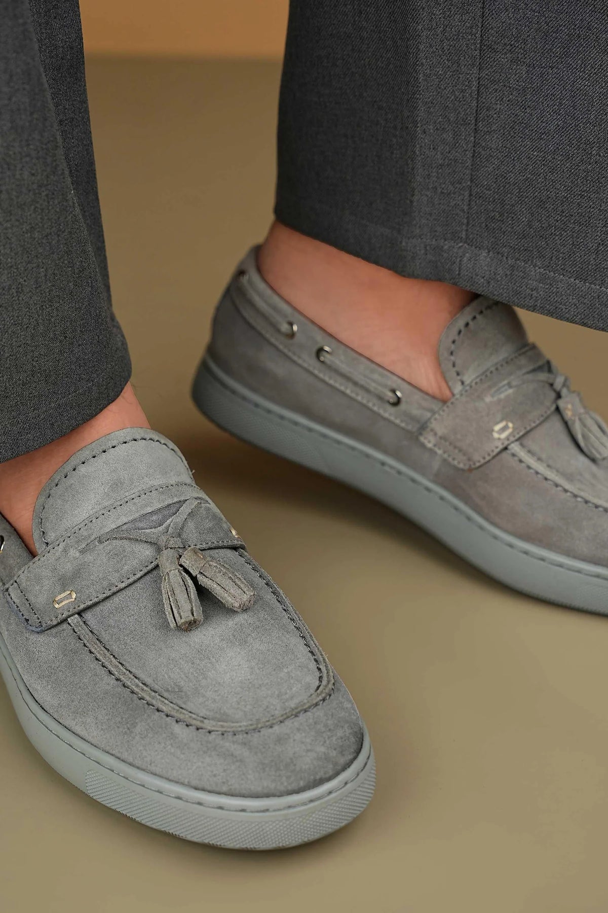 Versatile yet bold, this ash-toned loafer includes gold eyelets and a tassel detail for added charm.
