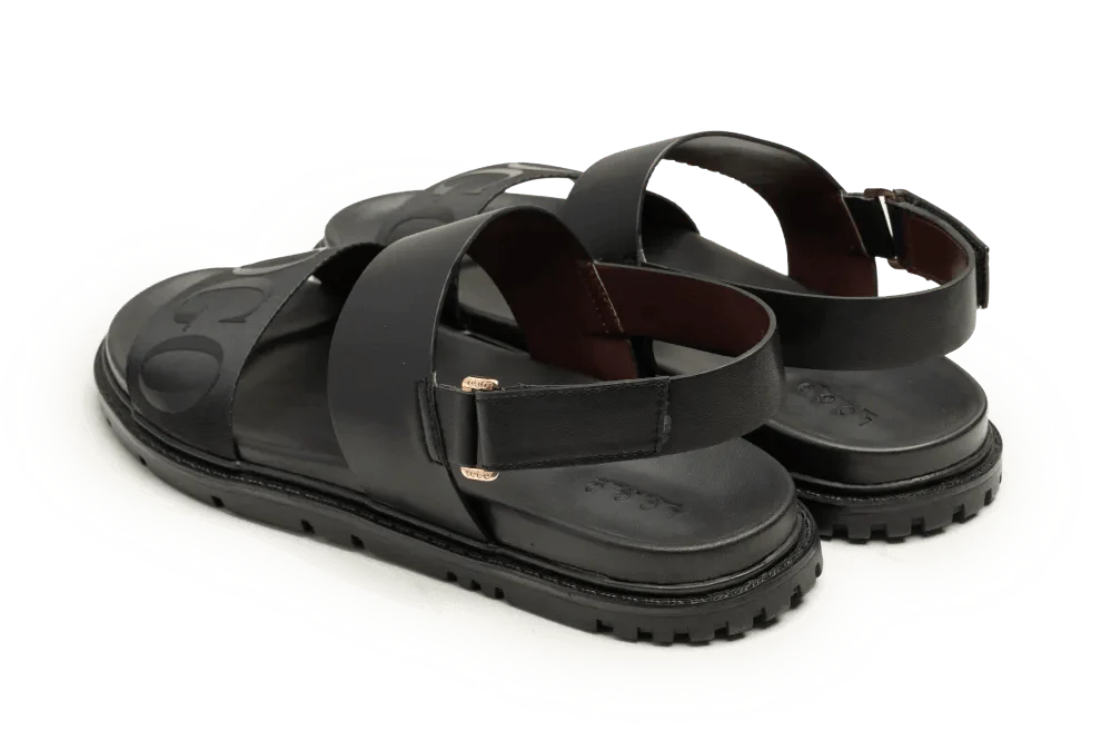 Our double strapped sandals feature a chic sling back for comfortable fit. The front strap proudly displays our logo, adding a touch of elegance. Perfect for everyday wear, these sandals combine comfort and style.