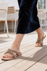 Designed for chic style, these peach-toned flats bring textural uniqueness and comfort.