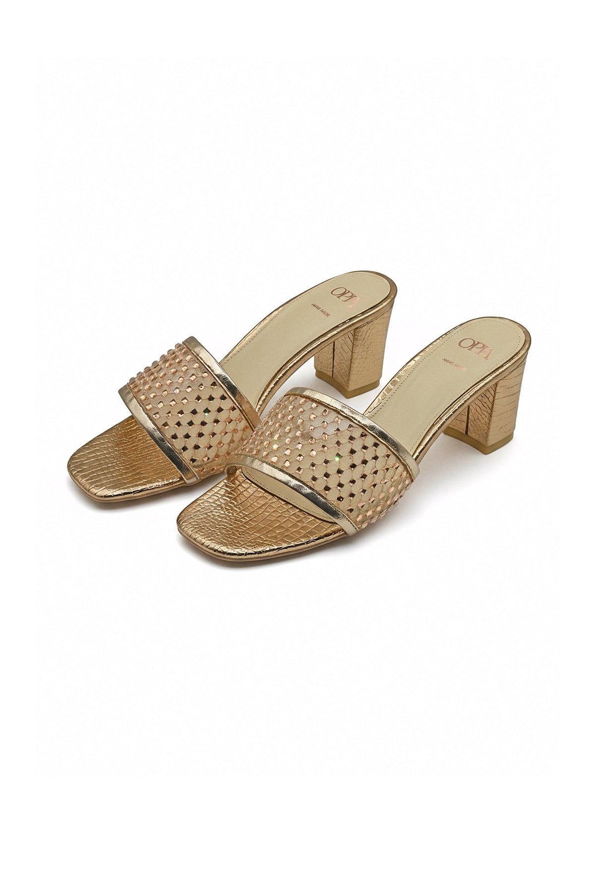 - Metallic crocodile-textured faux leather insole adds a chic touch.