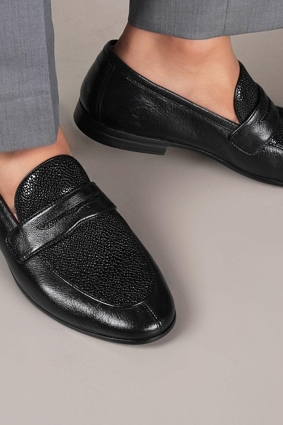 Featuring a rich black shade, this formal wear is complemented by a stylish two-toned design. The textured top adds a touch of uniqueness, making them perfect for any formal occasion.