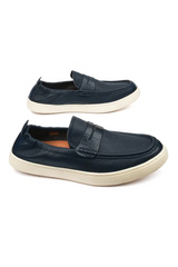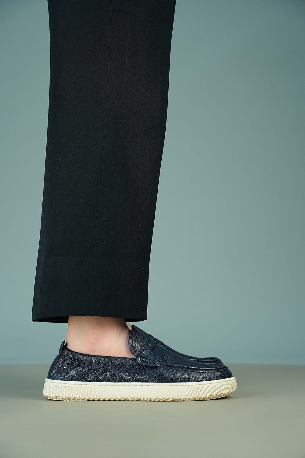 These casual style blue shoes feature a bold, wide white sole for a modern, laid-back vibe. You can wear them to your casual outings or dinners.