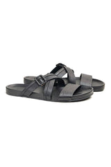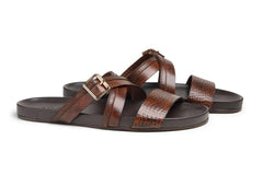 Brown Double cross strapped leather slipper with croc pattern design