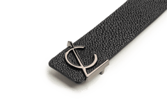 Black soft grained leather belt with premium silver LOGO Collection buckle